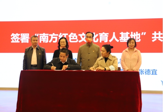 活動首先簽署了“南方紅色文化育人基地”共建協(xié)議,簽約人為雙方授權代表董秋生、孔練光,雙方見證人為王國梁、彭伊娜、黃學茭、張德宜。隨后舉行“南方紅色文化育人基地”揭牌儀式。雙方合作共建南方紅色文化育人基地,旨在進一步學習貫徹習近平總書記關于傳承紅色文化的重要講話精神,讓紅色基因融入青年學生血脈,代代相傳。