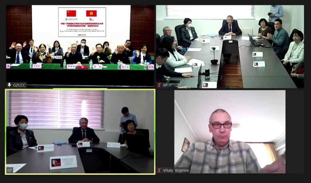 12月15日,我校與吉爾吉斯斯坦創(chuàng)新職業(yè)大學(xué)合作共建的“吉中數(shù)字創(chuàng)新技術(shù)學(xué)院”簽約儀式以視頻方式舉行,校長(zhǎng)蔣新華、創(chuàng)新職業(yè)大學(xué)校長(zhǎng)Dr.Musapar Orozaliev、副校長(zhǎng)Dr.Nagima Tusubekova以及兩校相關(guān)院系和職能部門負(fù)責(zé)人參加簽約儀式。儀式由黨委副書記魯巖主持。