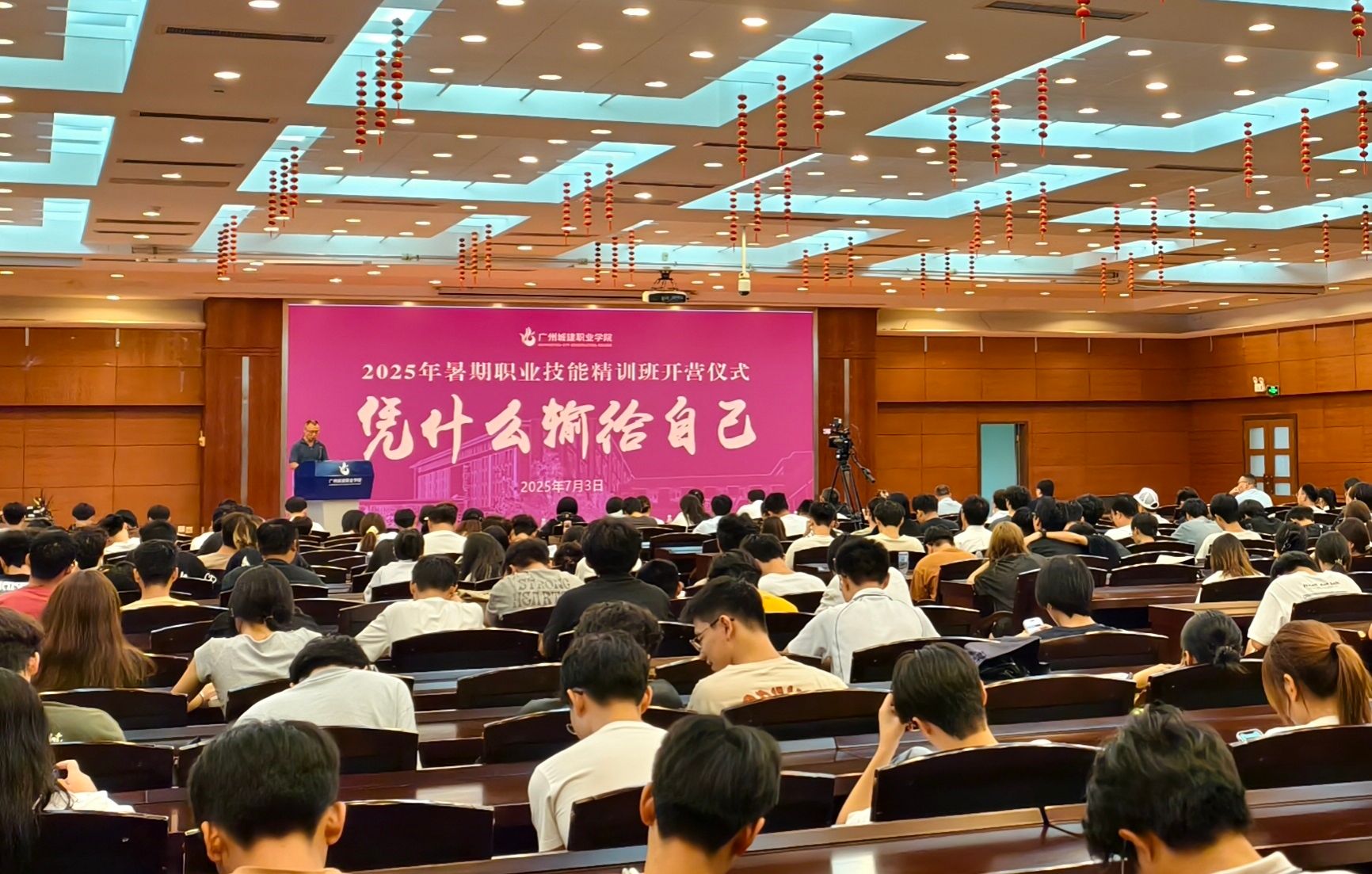 7月3日下午,學(xué)校以“憑什么輸給自己”為主題在廣州與清遠兩校區(qū)同步舉行暑期職業(yè)技能精訓(xùn)班開營儀式。副校長鄢維峰,教務(wù)處、學(xué)生處相關(guān)負責(zé)人,專業(yè)學(xué)院分管領(lǐng)導(dǎo)、教務(wù)秘書、集訓(xùn)師生及相關(guān)部門人員共同參與。儀式由教務(wù)處處長王平主持。