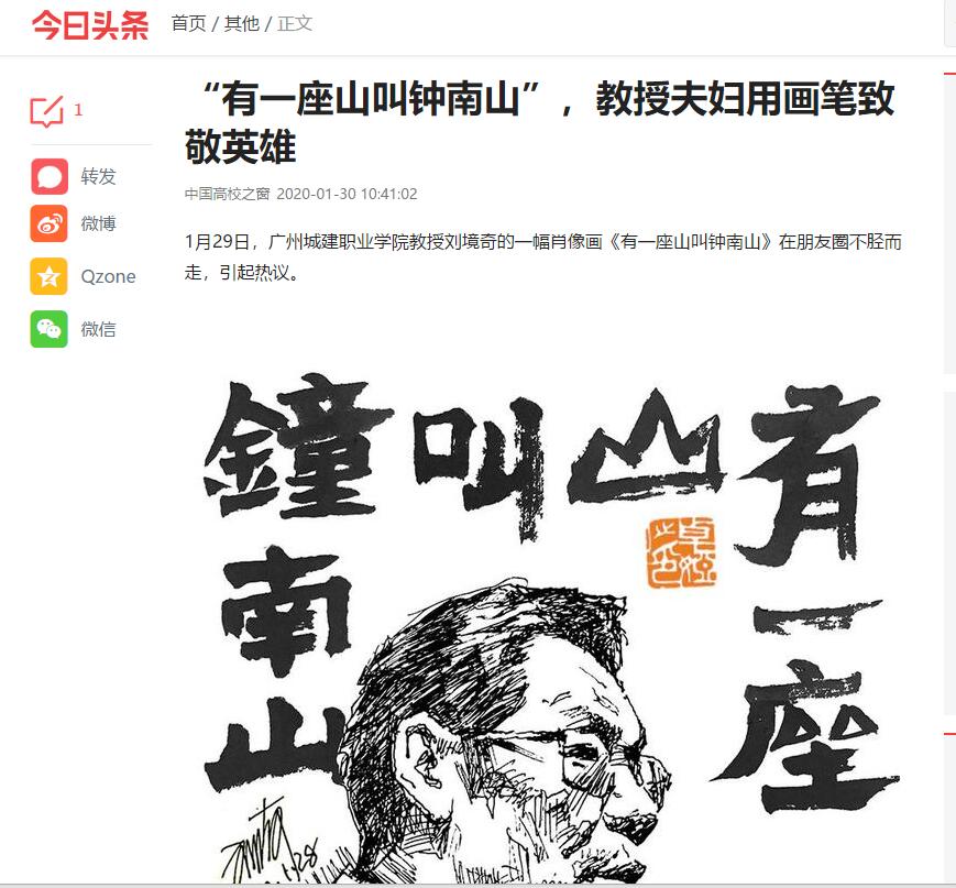 今日頭條:有一座山叫鐘南山” 教授用畫(huà)筆致敬英雄