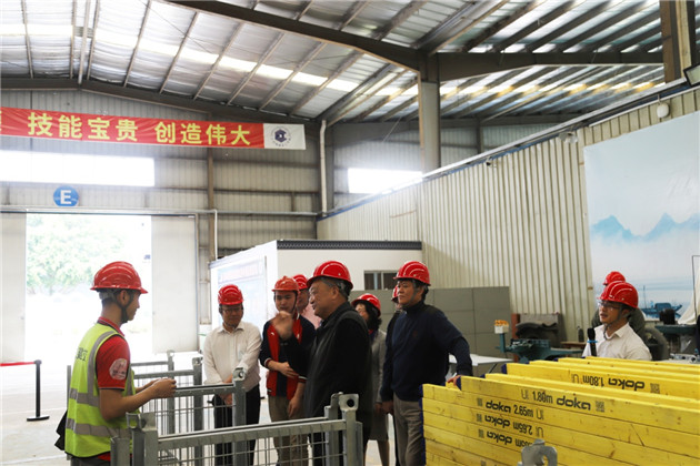 中山大學(xué)原校長(zhǎng)黃達(dá)人教授考察學(xué)校現(xiàn)代建築技術(shù)職業(yè)技能公共實(shí)訓(xùn)中心,與「世賽」冠軍陳君輝、「國(guó)賽」金牌獲得者謝健強(qiáng)交流