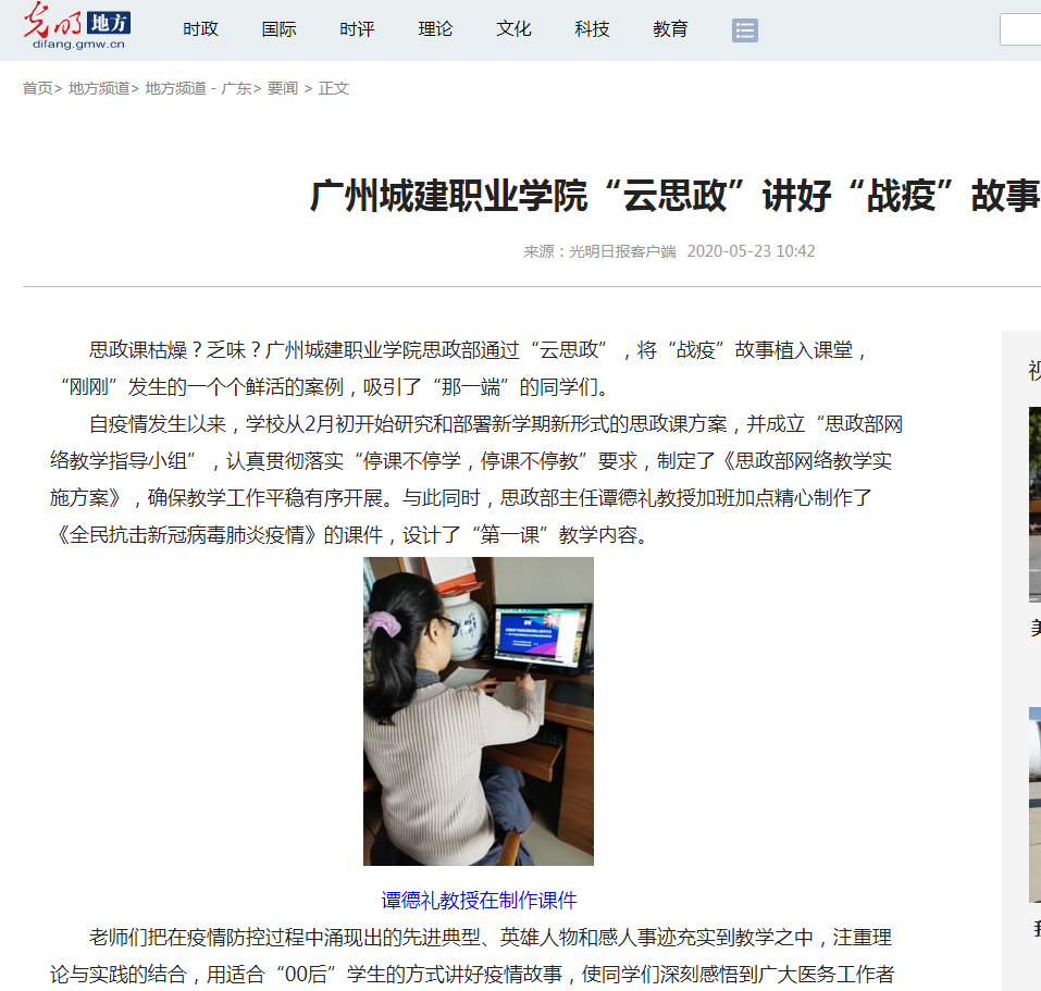【光明網(wǎng)】廣州城建職業(yè)學院“云思政”講好“戰(zhàn)疫”故事