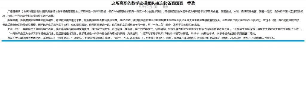 言及在大學(xué)期間兩次參賽經(jīng)歷,李思鋒說:“終身受益。”2019年,他畢業(yè)到深圳找工作時,“出示”了自己的獲獎證書,給他加了很多分。目前,李思鋒在某公司科技資訊部擔(dān)任后端開發(fā)工程師,2020年底,他所在的公司登陸了深交所。