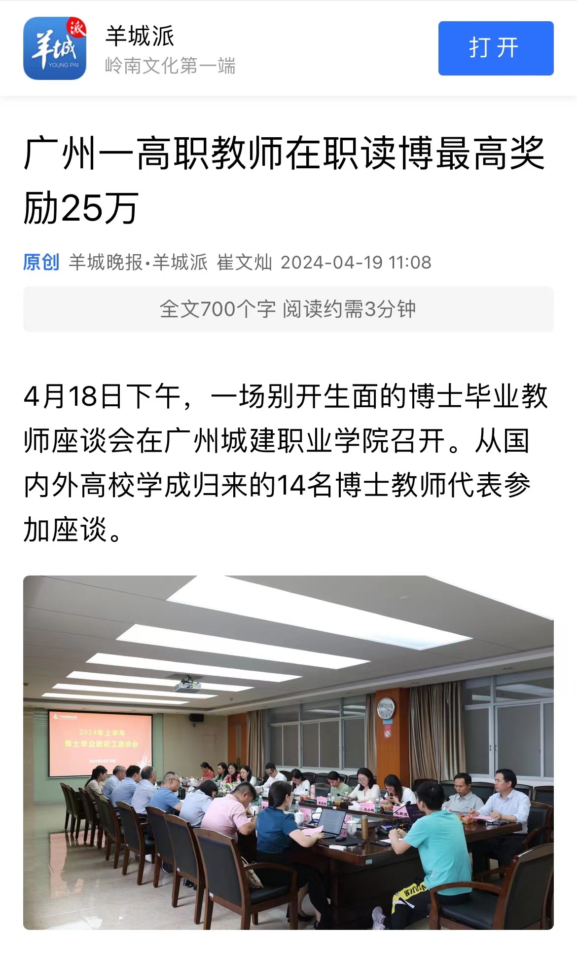 4月18日下午,一場(chǎng)別開生面的博士畢業(yè)教師座談會(huì)在廣州城建職業(yè)學(xué)院召開。從國(guó)內(nèi)外高校學(xué)成歸來的14名博士教師代表參加座談。