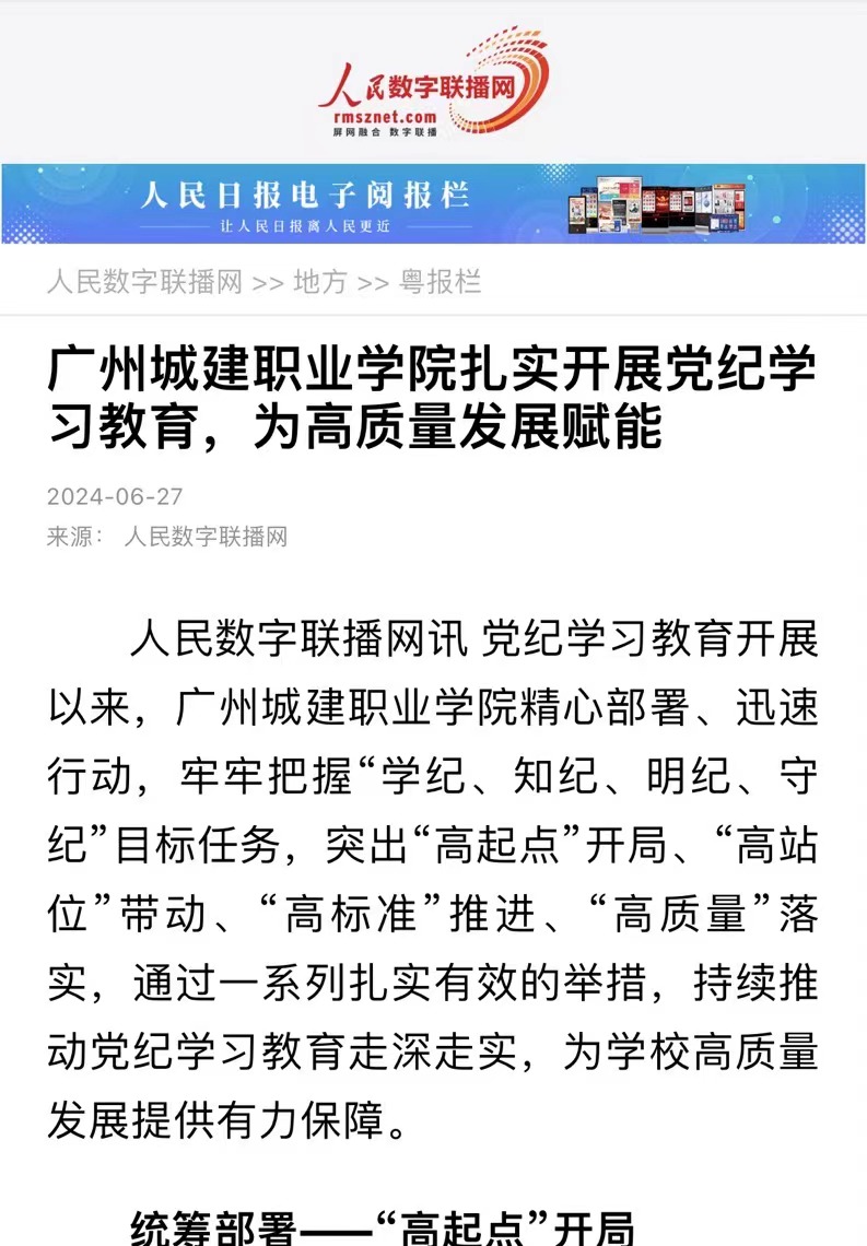 黨紀(jì)學(xué)習(xí)教育開展以來(lái),廣州城建職業(yè)學(xué)院精心部署、迅速行動(dòng),牢牢把握“學(xué)紀(jì)、知紀(jì)、明紀(jì)、守紀(jì)”目標(biāo)任務(wù),突出“高起點(diǎn)”開局、“高站位”帶動(dòng)、“高標(biāo)準(zhǔn)”推進(jìn)、“高質(zhì)量”落實(shí),通過(guò)一系列扎實(shí)有效的舉措,持續(xù)推動(dòng)黨紀(jì)學(xué)習(xí)教育走深走實(shí),為學(xué)校高質(zhì)量發(fā)展提供有力保障。