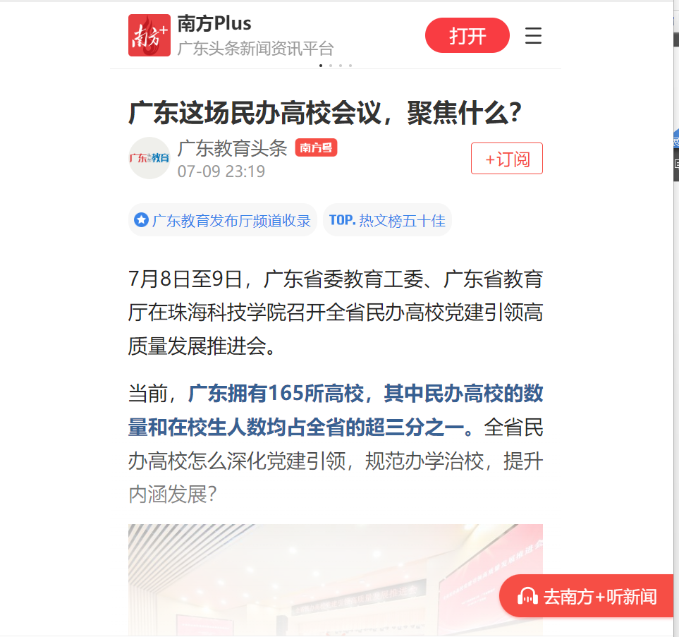 7月8日至9日,廣東省委教育工委、廣東省教育廳在珠??萍紝W院召開全省民辦高校黨建引領(lǐng)高質(zhì)量發(fā)展推進會。