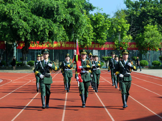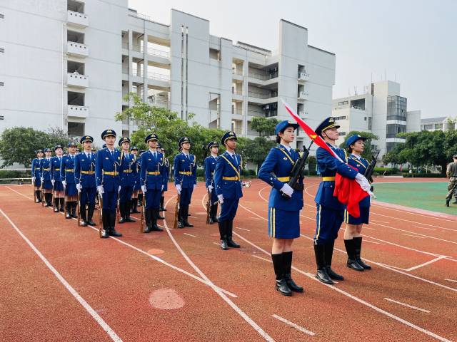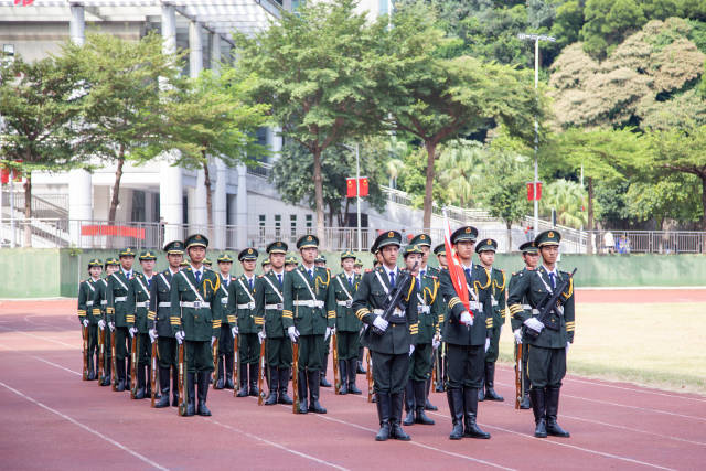 護衛(wèi)隊肩負著學(xué)校日常升旗以及重大活動執(zhí)勤的重任。隊員們不懼艱苦,持之以恒地訓(xùn)練,對每一個動作都力求做到極致。他們紀律嚴明,作風(fēng)硬朗,富有集體榮譽感。隊員們懷著對國旗的敬畏與熱愛之情,將護衛(wèi)國旗視作至高無上的榮耀,憑借頑強的毅力和出色的表現(xiàn),多次在廣東省高校國旗護衛(wèi)隊及廣東省學(xué)生軍事訓(xùn)練營中斬獲佳績,為學(xué)校爭得榮譽。
