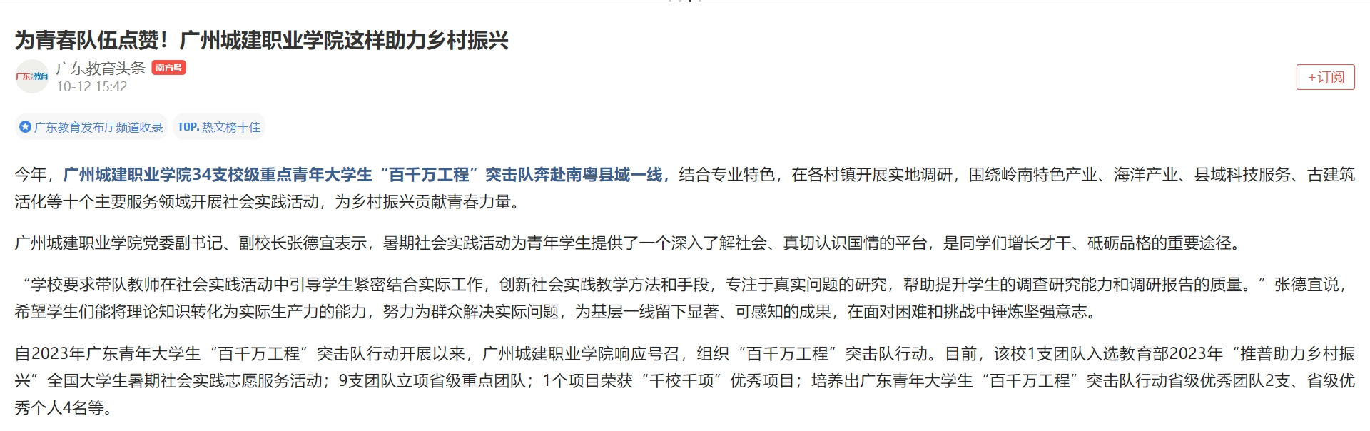 【南方+】為青春隊(duì)伍點(diǎn)贊!廣州城建職業(yè)學(xué)院這樣助力鄉(xiāng)村振興