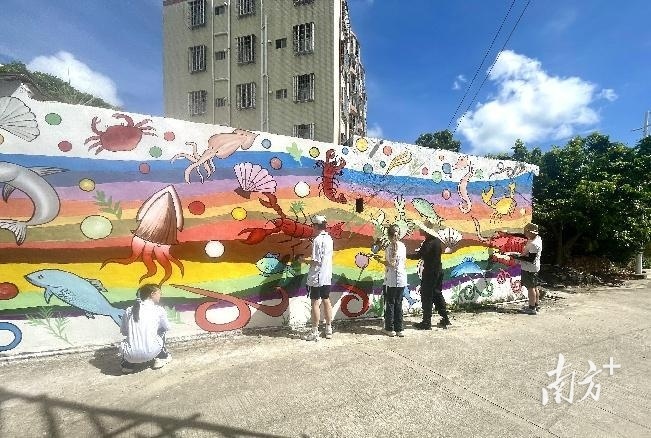 深藏Blue實(shí)踐隊(duì)前往陽江市陽東區(qū)東城鎮(zhèn)金村村,發(fā)揮藝術(shù)與設(shè)計(jì)特長,結(jié)合村史村情,為金村村設(shè)計(jì)墻繪,通過墻體繪畫,為鄉(xiāng)村文化增添色彩,激發(fā)鄉(xiāng)村活力。同時(shí),實(shí)踐隊(duì)拍攝并記錄了金村村美麗的村容村貌和風(fēng)土人情,為金村制作鄉(xiāng)村宣傳片,助力提升當(dāng)?shù)匚穆弥群兔雷u(yù)度。