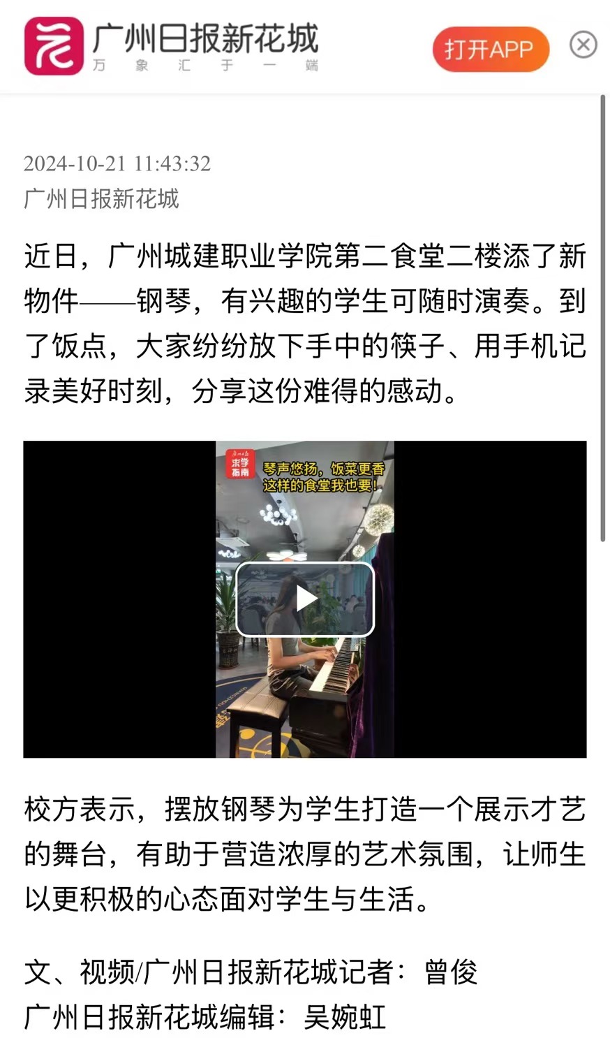 【廣州日?qǐng)?bào)】上鋼琴!廣州城建職業(yè)學(xué)院升級(jí)飯?zhí)?/p>