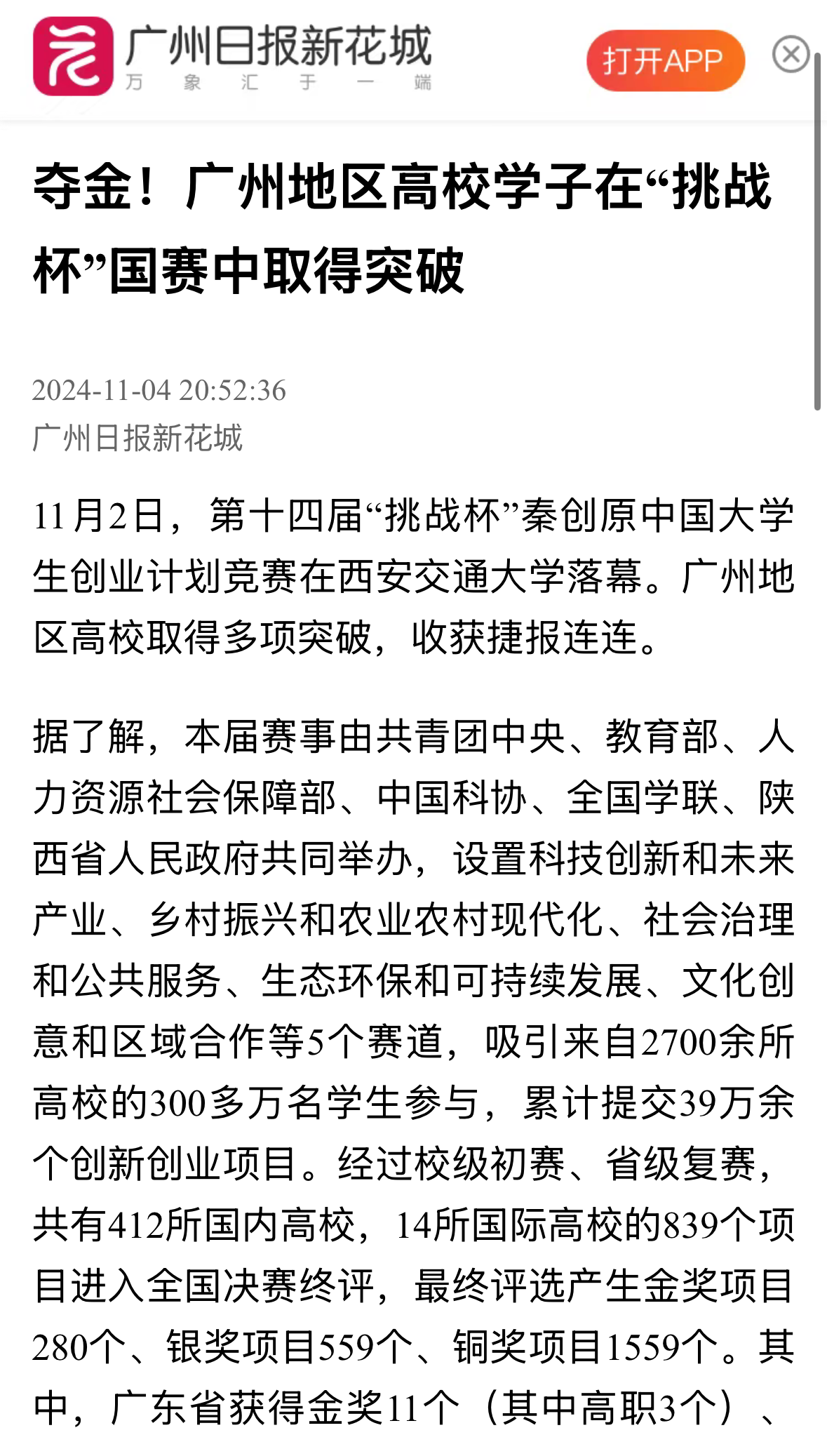 11月2日,第十四屆“挑戰(zhàn)杯”秦創(chuàng)原中國(guó)大學(xué)生創(chuàng)業(yè)計(jì)劃競(jìng)賽在西安交通大學(xué)落幕。廣州地區(qū)高校取得多項(xiàng)突破,收獲捷報(bào)連連。