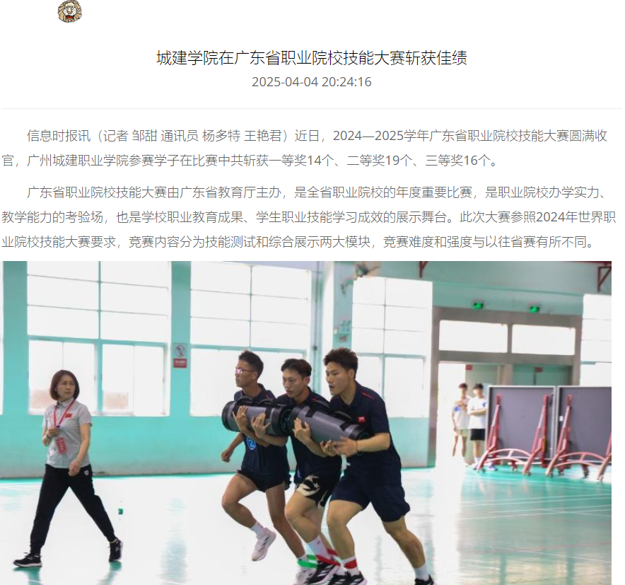 近日,2024—2025學年廣東省職業(yè)院校技能大賽圓滿收官,廣州城建職業(yè)學院參賽學子在比賽中共斬獲一等獎14個、二等獎19個、三等獎16個。