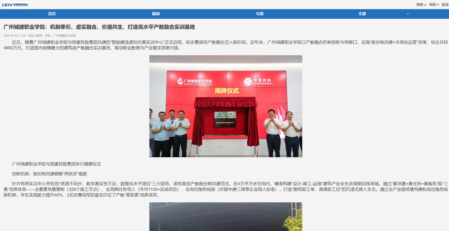 廣州城建職業(yè)學(xué)院與恒富控股集團(tuán)舉行揭牌儀式