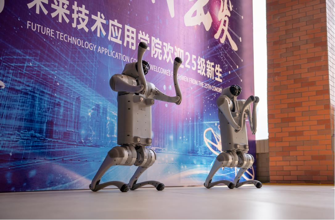 與專業(yè)“零距離”接觸,是今年迎新活動的一大特色。為呼應智能機器人技術、城市軌道交通機電技術、醫(yī)學檢驗技術等13個新專業(yè)的開設,未來技術應用學院特別派出無人機和機器狗擔任“志愿者”。這些機器狗不僅能以1.6米/秒的速度奔跑,還可負重10公斤,輕松為新生提供引導服務。