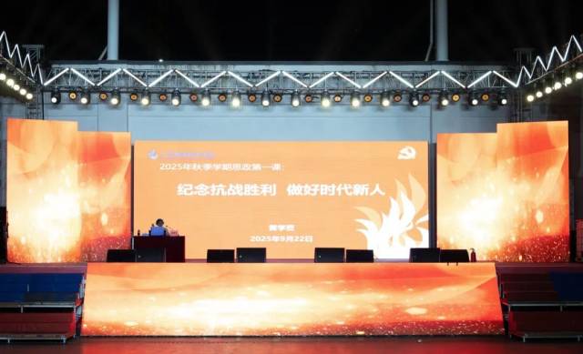 9月22日晚,廣州城建職業(yè)學(xué)院以“紀念抗戰(zhàn)勝利 做好時代新人”為題,為2025級5200多名新生講授了一堂深刻而富有感染力的“思政第一課”。氣氛莊重熱烈,場面震撼,同學(xué)們?nèi)虒WⅠ雎牐簧钌钣|動,愛國情感共鳴,掌聲響徹運動場。