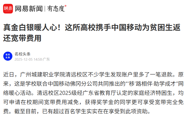 退款到賬并非終點。校方與中國移動佛岡分公司表示,將持續(xù)關(guān)注師生的數(shù)字化需求。