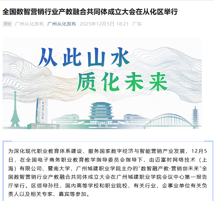 全國數(shù)智營銷行業(yè)產(chǎn)教融合共同體在從化成立,不僅可推動學(xué)術(shù)前沿與產(chǎn)業(yè)實踐深度融合,構(gòu)建“產(chǎn)學(xué)研用”良性閉環(huán),實現(xiàn)從技能學(xué)習(xí)到崗位勝任的無縫銜接,還可通過催生新技術(shù)、孵化新項目、制定新標(biāo)準(zhǔn),讓“教育鏈、人才鏈”精準(zhǔn)服務(wù)“產(chǎn)業(yè)鏈、創(chuàng)新鏈”,為從化高質(zhì)量發(fā)展和“百千萬工程”注入持續(xù)動力。接下來,從化區(qū)將持續(xù)做好“服務(wù)員”和“護航員”的角色,全力支持共同體的建設(shè)與發(fā)展。