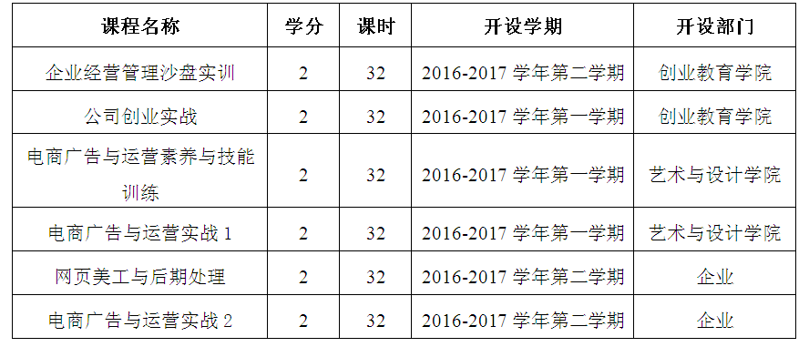 ● 創(chuàng)業(yè)學分(2學分/門課,并獲得“電商廣告與運營班”結(jié)業(yè)證書)
