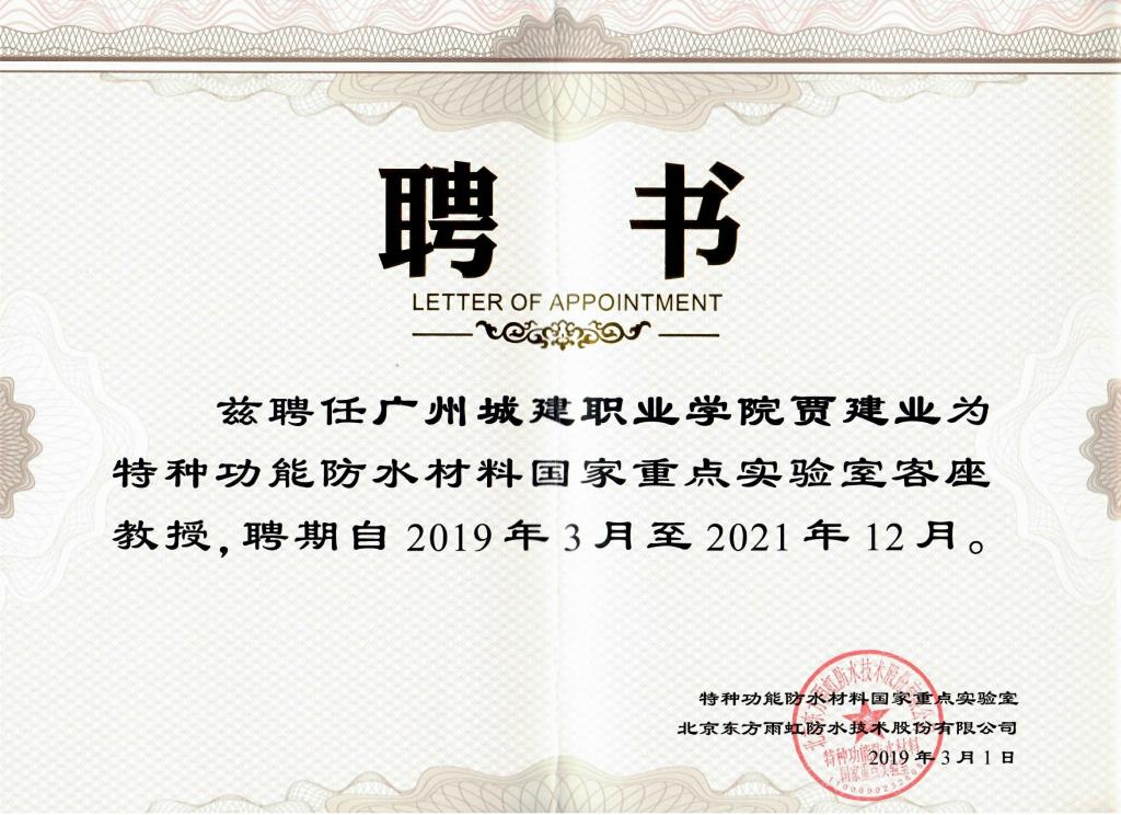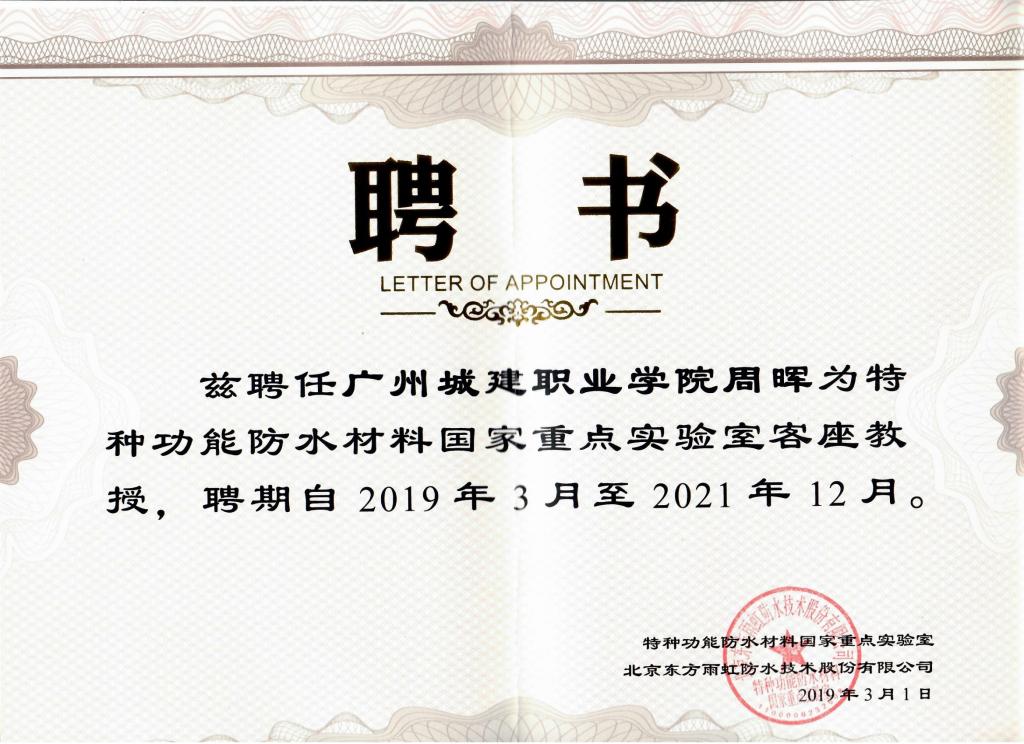 近日,學(xué)校副校長(zhǎng)周暉、教務(wù)處處長(zhǎng)鄢維峰,建工學(xué)院院長(zhǎng)賈建業(yè)、副院長(zhǎng)魏愛(ài)敏、建工技術(shù)專(zhuān)業(yè)負(fù)責(zé)人李建華等五位教師被特種功能防水材料國(guó)家重點(diǎn)實(shí)驗(yàn)室(下稱(chēng)實(shí)驗(yàn)室)聘為客座教授,為實(shí)驗(yàn)室研究提供技術(shù)支持。