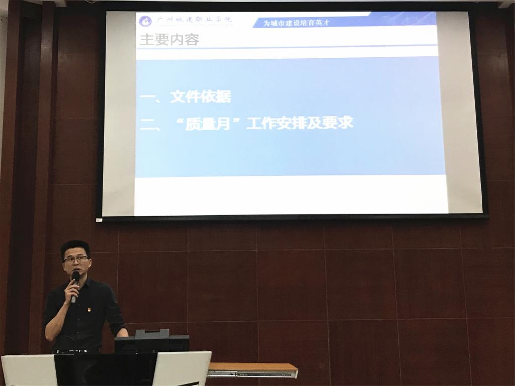 陳志杰對(duì)專(zhuān)業(yè)診斷與改進(jìn)的文件依據(jù)、“質(zhì)量月”的工作安排及要求作了解讀,對(duì)“五縱、五橫、一平臺(tái)”作了說(shuō)明和拓展。賈建業(yè)結(jié)合學(xué)校期中教學(xué)檢查的要求,對(duì)診改“質(zhì)量月”和自評(píng)工作的開(kāi)展作了具體安排。