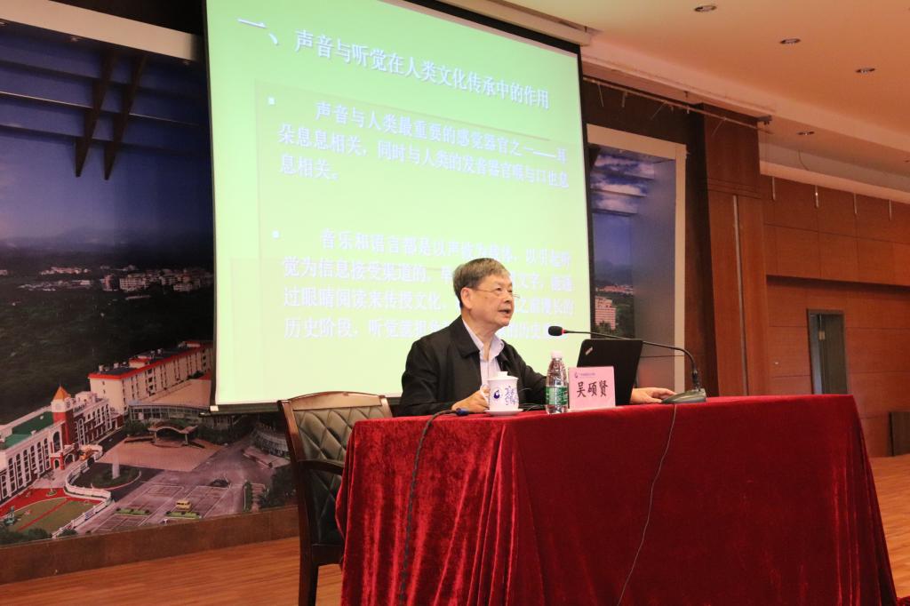 吳碩賢院士在講座中首先闡明了聽覺的重要性,他說,早在人類發(fā)明文字前,聽覺就通過語言與音樂承擔起交流信息、傳承文明的重要歷史使命。能夠發(fā)出和收聽語言與歌聲如此復雜的聲音,是智人區(qū)別于其他動物最顯著的特征和能力。講座從人類思維的本質,闡述了良好人居聲環(huán)境對創(chuàng)造性思維及人類健康的重要性;從室內聲學、城市環(huán)境聲學及聲景學等學科,闡述了如何構建良好的聲環(huán)境。講座還介紹了構建與評價聲環(huán)境的若干前沿科技。