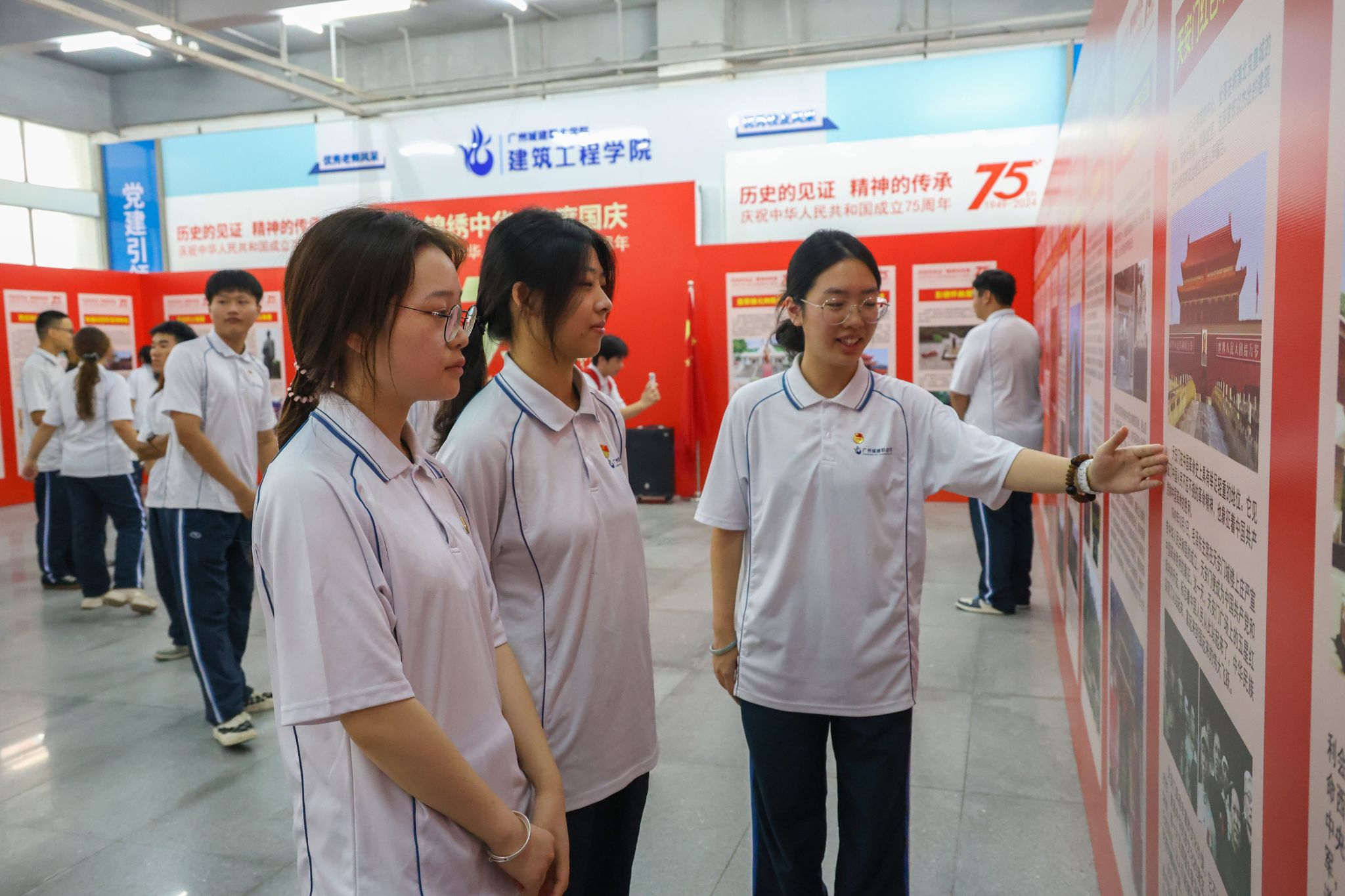 9月29日下午,由學(xué)校黨委主辦、建筑工程學(xué)院承辦的慶祝中華人民共和國成立75周年紅色建筑作品展在建工機(jī)電樓大廳開展,學(xué)校黨委書記黃學(xué)茭,黨委副書記張江南,黨委組織部部長吳輝軍,黨委宣傳部部長王艷君,建筑工程學(xué)院黨委書記、院長吳承霞及建筑工程學(xué)院領(lǐng)導(dǎo)班子、師生代表共同參與作品展開幕式。