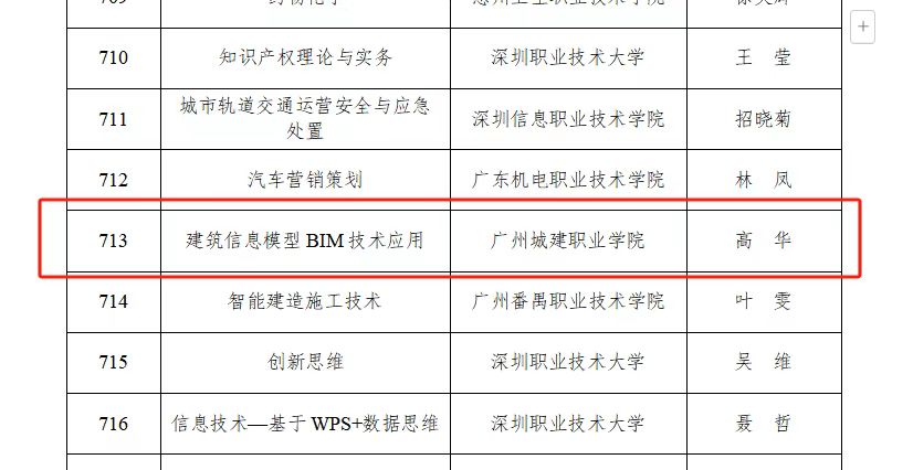 近日,教育部公示了2023年職業(yè)教育國家在線精品課程遴選結(jié)果,我校建筑工程學(xué)院副院長高華主持的《建筑信息模型BIM技術(shù)應(yīng)用》課程成功獲評,實現(xiàn)了我校課程建設(shè)在國家級層面的新突破,也是我校在“雙高”校建設(shè)中取得的國家級重要標志性成果。