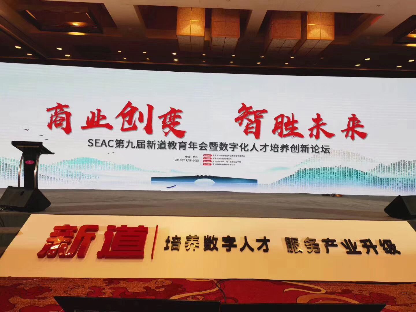 11月9日,由教育部工商管理類專業(yè)指導委員會指導,新道科技股份有限公司主辦,浙江科技學院、浙江金融職業(yè)學院承辦,用友網(wǎng)絡科技股份有限公司協(xié)辦的“商業(yè)創(chuàng)變 智勝未來SEAC第九屆新道教育年會——數(shù)字化人才培養(yǎng)創(chuàng)新論壇”在杭州盛大召開。本屆論壇邀請了來自教育主管部門、院校、企業(yè)、教育領域的領導、專家等千余位嘉賓齊聚一堂,圍繞“數(shù)字化人才培養(yǎng)”的主題展開探討與交流,共同為深入推進產(chǎn)教融合校企合作,提升“數(shù)字化人才培養(yǎng)”質(zhì)量建言獻策。我校副校長王媚莎、經(jīng)濟與管理學院財務管理教研室主任劉子嬋應邀出席了此次論壇。