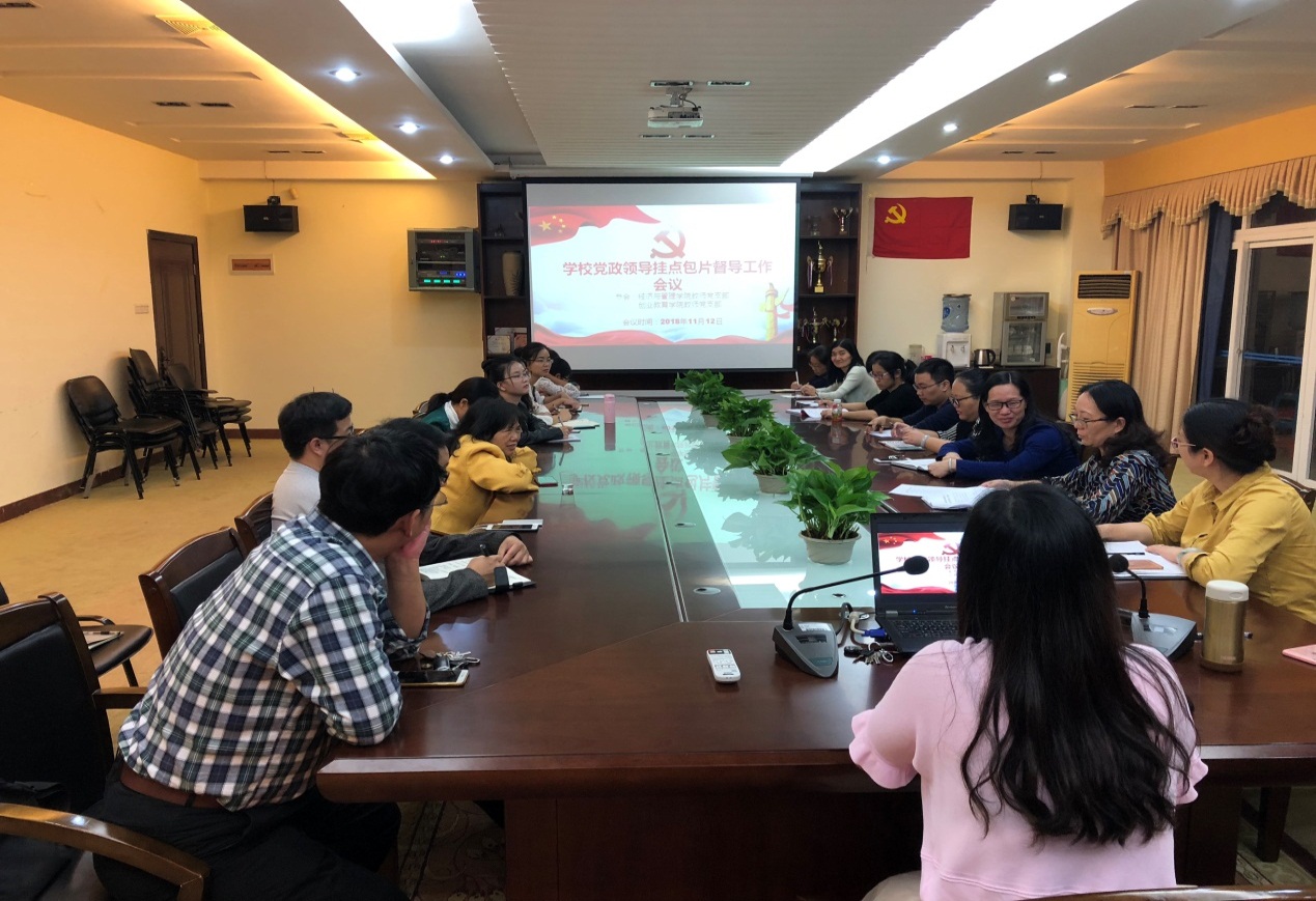為貫徹落實《中共廣州城建職業(yè)學(xué)院委員會建設(shè)三年行動計劃(2018-2020年)》及《中共廣州城建職業(yè)學(xué)院委員會學(xué)校領(lǐng)導(dǎo)掛點包片督導(dǎo)工作方案》,踐行“第一議題”學(xué)習(xí)制度,11月12日晚,經(jīng)濟與管理學(xué)院教師黨支部與創(chuàng)業(yè)教育學(xué)院教師黨支部聯(lián)合召開學(xué)校黨政領(lǐng)導(dǎo)掛點包片督導(dǎo)工作會議,會議由王媚莎副校長主持,兩院教師黨支部全體黨員參會。