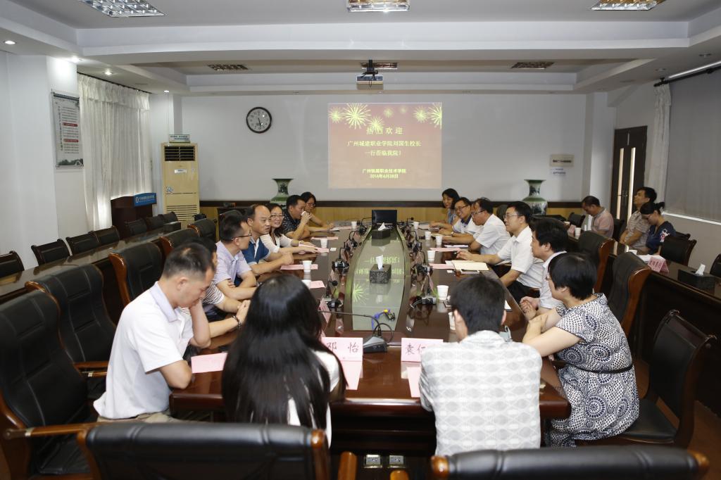景廣軍院長對劉校長一行表示熱烈歡迎,對劉校長就任該院院長時期所做出的貢獻表示感謝,并簡要介紹了廣鐵職院近兩年在內(nèi)涵建設、品牌專業(yè)建設、國家骨干校實訓基地建設等方面取得的成績,與大家分享了相關建設經(jīng)驗。并就前不久到廣州城建職院所見校園環(huán)境、實訓條件和省級品牌專業(yè)、協(xié)同育人平臺建設等創(chuàng)新強校“1177”工程所取得的成績給予高度評價,表示將鼓勵和支持物流管理專業(yè)骨干教師到城建掛職任教,打造公辦高職院校與民辦高職院校合作發(fā)展的典范。雷忠良書記表示完全贊同景院長的意見,要無條件支持城建學院創(chuàng)新發(fā)展。