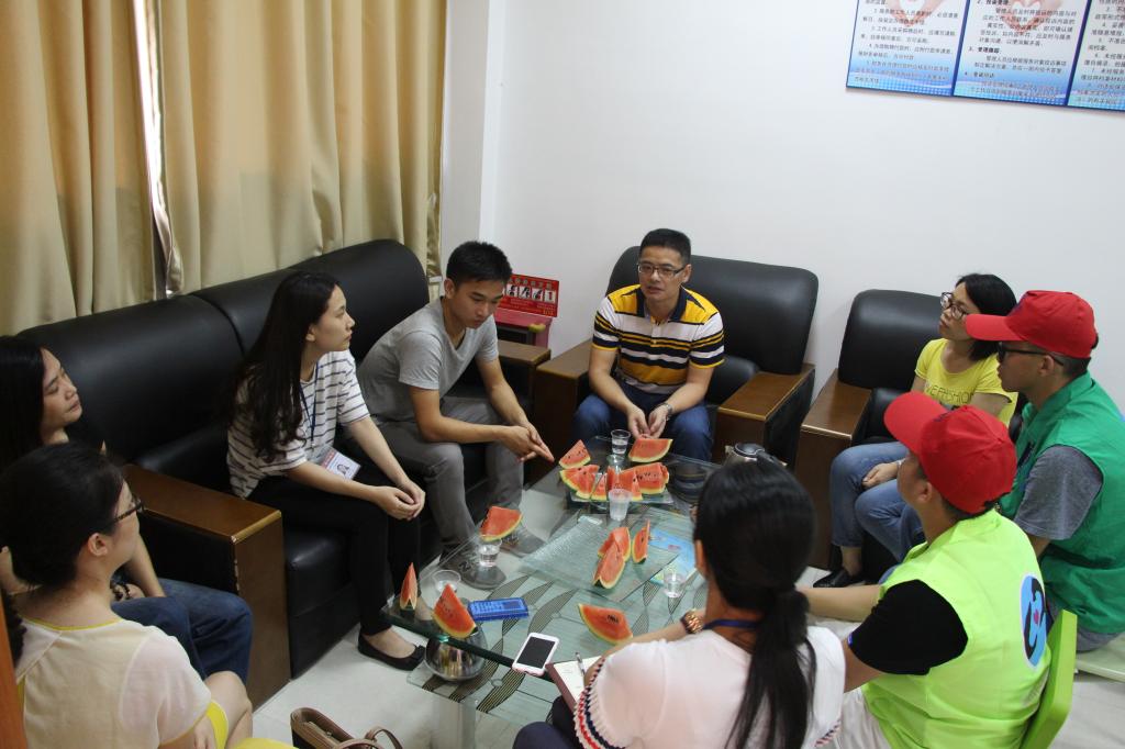 活動(dòng)當(dāng)天,經(jīng)濟(jì)與管理學(xué)院副院長(zhǎng)潘福中,資助服務(wù)站指導(dǎo)老師阮素妍,輔導(dǎo)員黃鎮(zhèn)堅(jiān)、鄧順蘭及林偉鳳老師前往從化區(qū)江埔街家庭綜合服務(wù)中心慰問(wèn)社工及全體學(xué)生干部,也為小朋友們帶來(lái)了水果、零食,與小朋友們談心、玩樂(lè)。活動(dòng)期間,小朋友們臉上蕩漾著笑意。最后,學(xué)院領(lǐng)導(dǎo)與江埔街家庭綜合服務(wù)中心的社工負(fù)責(zé)人進(jìn)行了座談,詳細(xì)謀劃下一步工作安排,為下學(xué)期更深入開(kāi)展活動(dòng)奠定了良好的基礎(chǔ)。