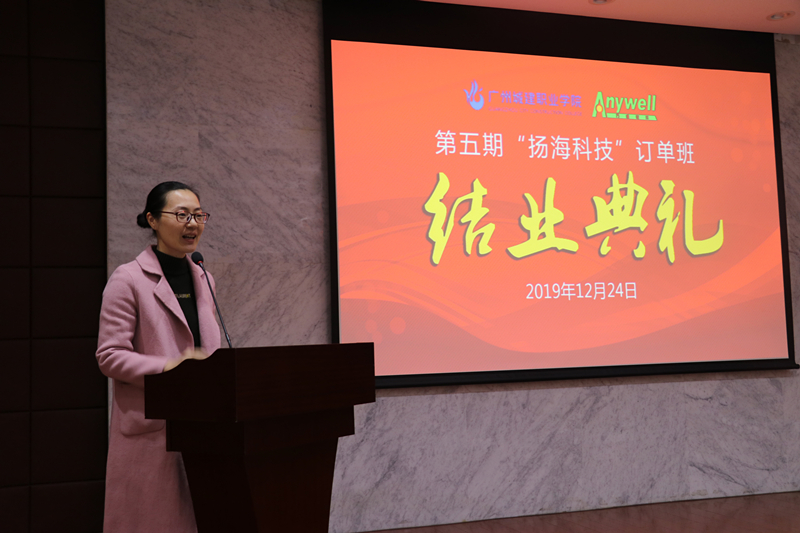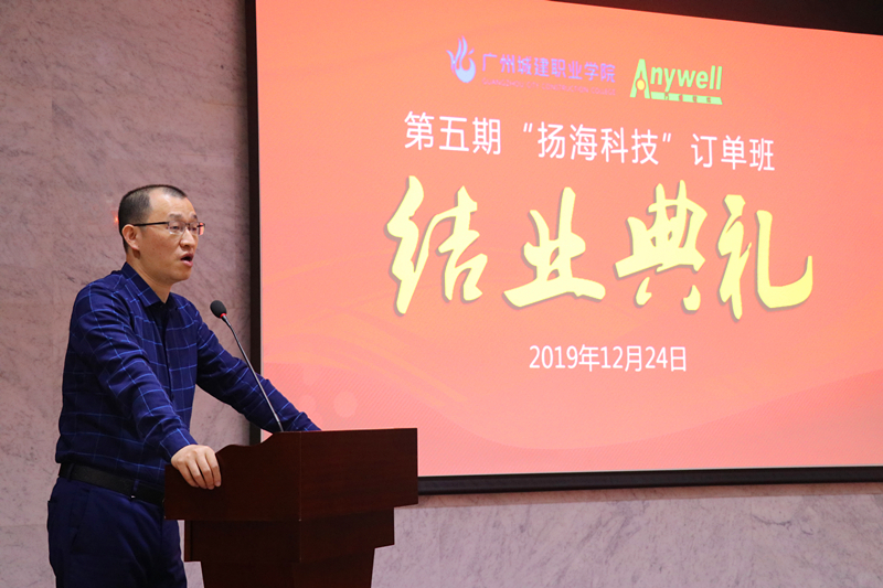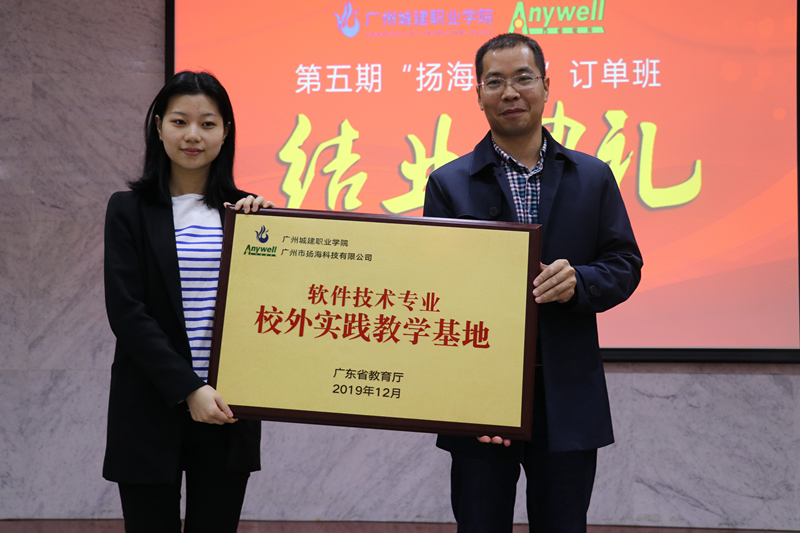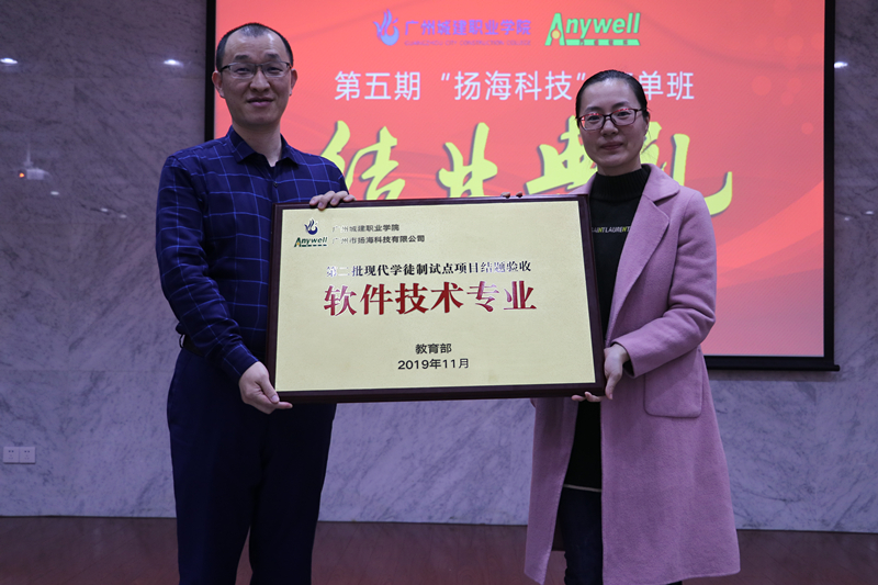 2019年12月24日,“揚??萍肌钡谖迤谟唵伟嘟Y(jié)業(yè)典禮在學(xué)校第二報告廳舉行。廣州市揚海數(shù)碼科技有限公司總經(jīng)理凌遠(yuǎn)龍、總經(jīng)理助理魏揚,學(xué)校副校長周暉、信息工程學(xué)院院長曹春華、訂單班和18學(xué)徒班全體同學(xué)等參加典禮。典禮由信息工程學(xué)院副院長湯鋒主持。