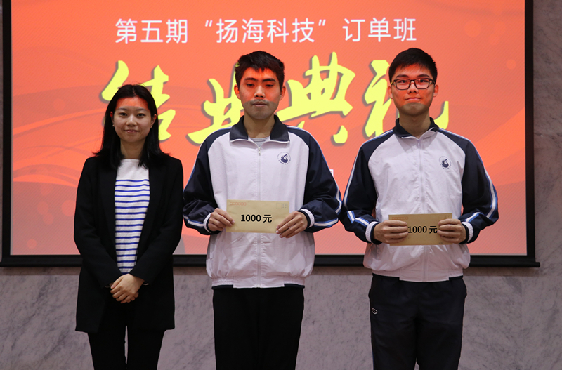 最后,進行了頒獎和授牌儀式。企業(yè)領(lǐng)導(dǎo)為優(yōu)秀的學(xué)生團隊發(fā)放企業(yè)獎學(xué)金5000元;學(xué)校將教育部現(xiàn)代學(xué)徒制試點、省級校外大學(xué)生實踐教學(xué)基地牌匾授予企業(yè)。