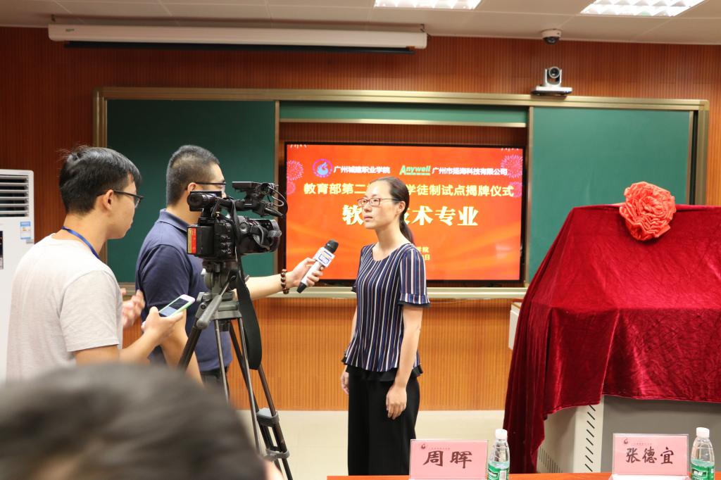 伴隨著全場熱烈的掌聲,校企雙方領(lǐng)導(dǎo)共同為教育部第二批現(xiàn)代學(xué)徒制試點專業(yè)揭牌。凌總和兩位副校長分別接受從化電視臺記者的采訪,校企雙方領(lǐng)導(dǎo)一致表示:“校企雙方精誠團(tuán)結(jié)、通力合作、資源整合、優(yōu)勢互補(bǔ)共同把這35名學(xué)生培養(yǎng)成為學(xué)校優(yōu)秀畢業(yè)生和企業(yè)的中堅力量?!?/span>