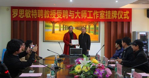 11月29日,羅思敏特聘教授受聘與大師工作室揭牌儀式在我校人文藝術(shù)樓舉行。校長劉國生,藝術(shù)與設(shè)計學(xué)院院長何新聞,副院長賀克、郭向民及相關(guān)專業(yè)的老師和學(xué)生參加了本次活動。
