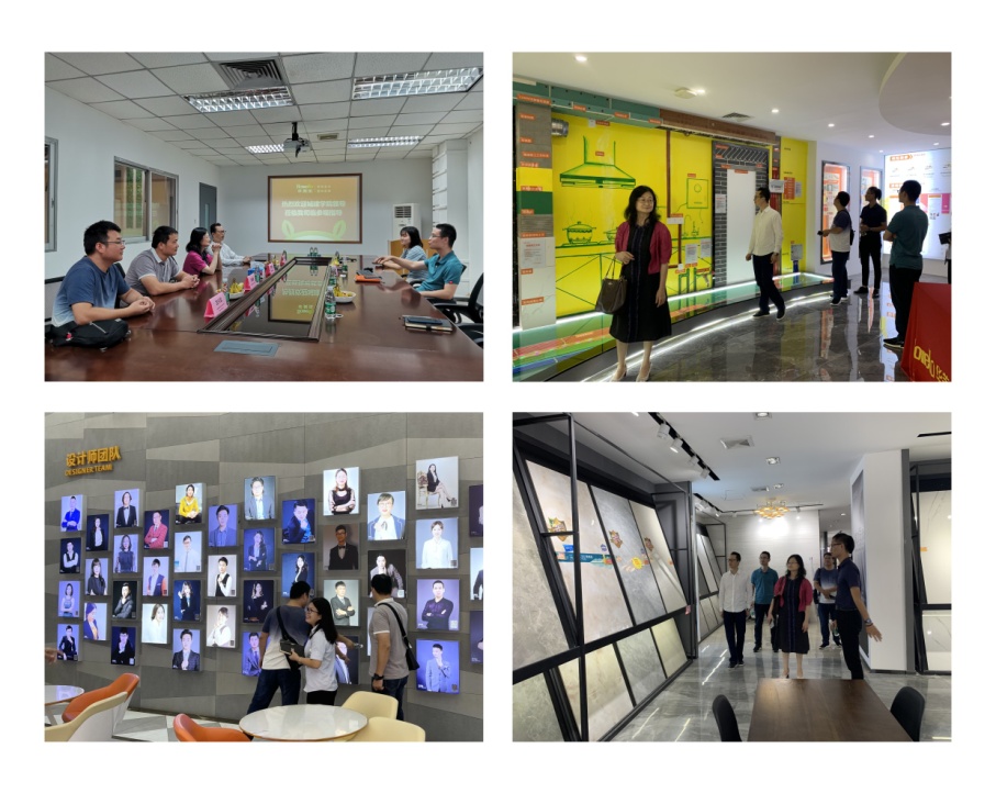 校領(lǐng)導(dǎo)帶隊走訪企業(yè)受到了企業(yè)的高度重視和熱情接待,華美樂家居集團(tuán)總裁辦主任王海賓等陪同參觀了集團(tuán)的發(fā)展歷程展牌、家裝材料銷售展廳、設(shè)計中心等。