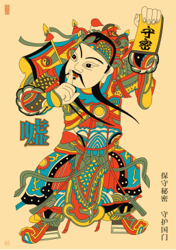 《保守秘密守護(hù)國門》作品提取中國傳統(tǒng)門神的元素,加強(qiáng)了“守”的文化符號,并在門神靜態(tài)呈現(xiàn)的基礎(chǔ)上進(jìn)行了動態(tài)的再創(chuàng)作,“噓”的動作讓作品含義更加生動?!渡袝黄泛窬巢铇I(yè)高端普洱茶包裝》則是教師團(tuán)隊(duì)的社會實(shí)踐落地項(xiàng)目,作品的主圖提取一品文官補(bǔ)服圖案,用高官品位等級寓意茶品的等級,圖案形式厚重飽滿內(nèi)涵豐富,厚境茶業(yè)的品牌理念不謀而合。