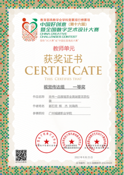 近日,第16屆中國好創(chuàng)意暨全國數(shù)字藝術(shù)設(shè)計(jì)大賽獲獎名單公布,我校藝術(shù)與設(shè)計(jì)學(xué)院謝石黨、熊杰、劉海燕三位老師的作品《保守秘密守護(hù)國門》和《尚書一品厚境茶業(yè)高端普洱茶包裝》在教師單元中雙獲視覺傳達(dá)組一等獎。