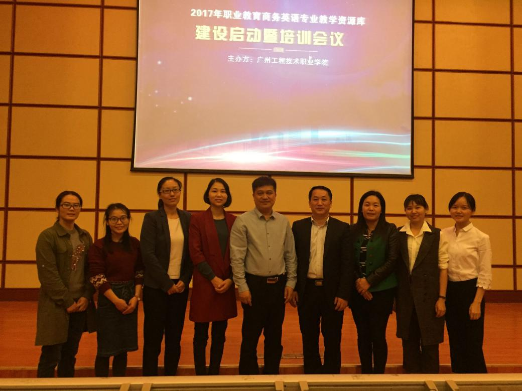 3月29-30日,2017年全國職業(yè)教育商務英語專業(yè)教學資源庫建設啟動暨培訓會議在廣州工程技術職業(yè)學院召開。中國職業(yè)技術教育學會領導,商務英語資源庫建設項目組專家,相關合作企業(yè)領導和各聯(lián)合院校承擔課程建設負責人出席了會議。外語外貿學院副院長邱漠河、李霜,商務英語教研室主任周銀新、副主任趙蘭蘭等老師代表學校參加會議。