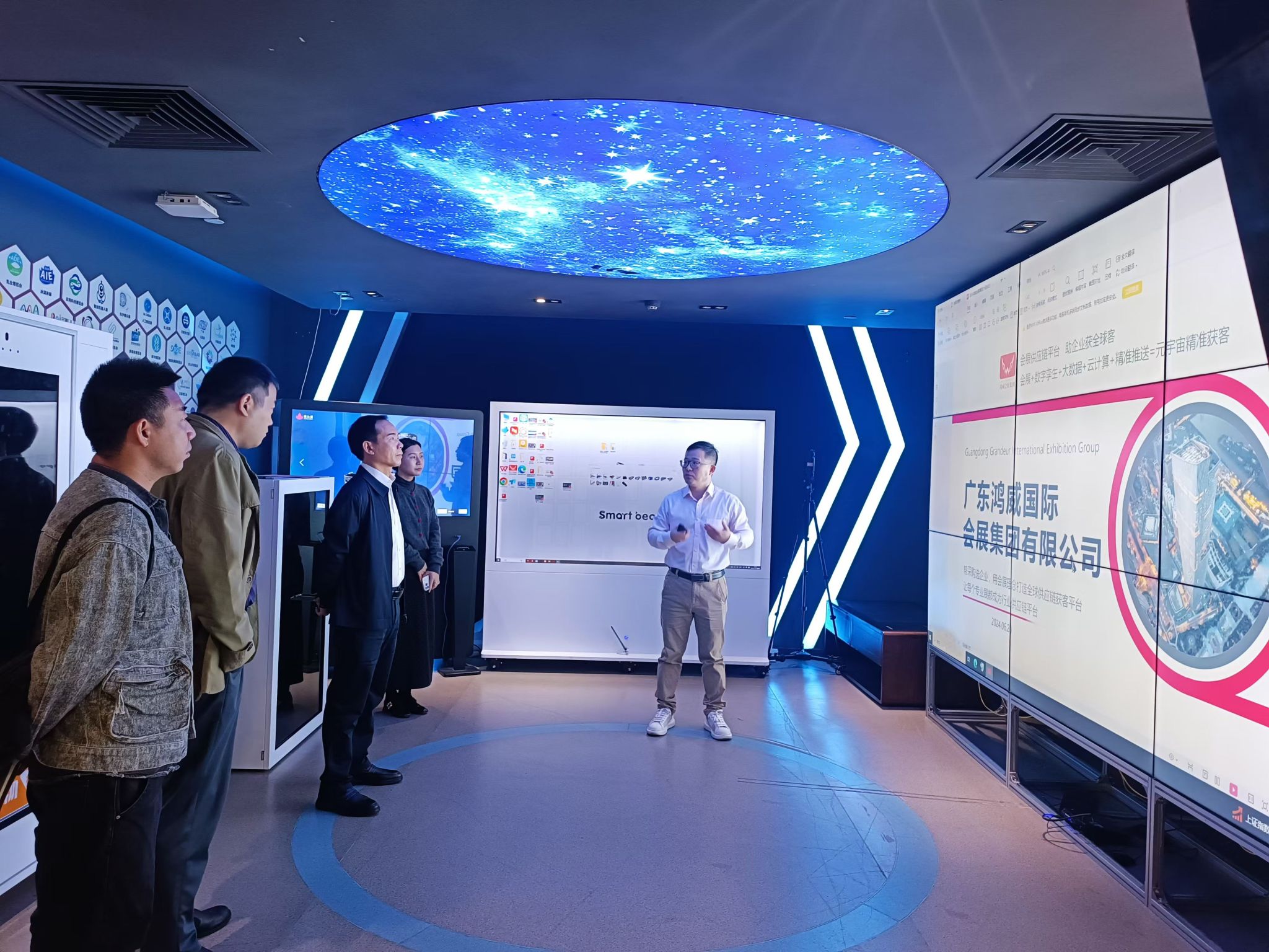 集團(tuán)行政副總裁易欣、董事長(zhǎng)助理劉紅巖,集團(tuán)項(xiàng)目發(fā)展中心培訓(xùn)經(jīng)理曾怡等對(duì)我校一行人員的來訪表示熱烈歡迎,并陪同參觀了公司的辦公環(huán)境、企業(yè)文化展示區(qū)及核心業(yè)務(wù)板塊,詳細(xì)介紹了集團(tuán)的發(fā)展歷程、業(yè)務(wù)范圍及未來規(guī)劃。特別參觀體驗(yàn)了鴻威云展系統(tǒng)及云展動(dòng)力數(shù)字孿生供應(yīng)鏈平臺(tái),涉及鴻威集團(tuán)的高科技展示產(chǎn)品區(qū),人工智能3D實(shí)物與場(chǎng)景掃描、掃描建模測(cè)繪等前沿科技技術(shù)等。
