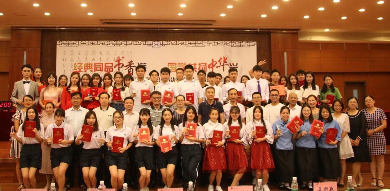 伴隨悠揚(yáng)的音樂,與會領(lǐng)導(dǎo)嘉賓為國學(xué)知識競賽及本年度讀書節(jié)活動(dòng)中的獲獎(jiǎng)?wù)哳C獎(jiǎng),并合影留念。