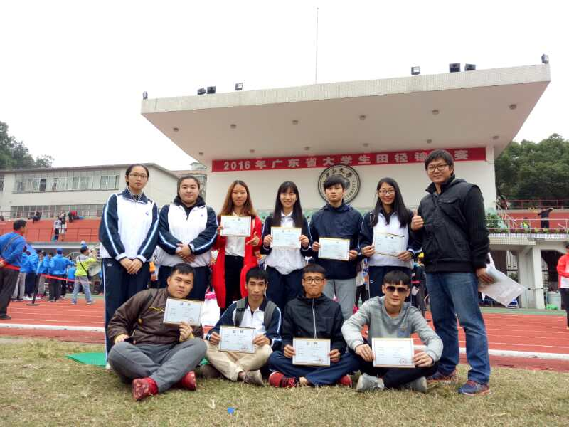 由廣東省學生體育藝術聯(lián)合會主辦、中山大學承辦的2016年廣東省第15屆大學生田徑錦標賽于12月22至25日在中山大學舉行。我校田徑運動隊在跳遠、鉛球、標槍、100米欄等多個項目共獲得8個獎項,為學校贏得了榮譽。