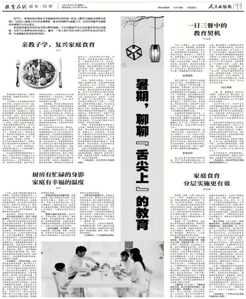 8月4日,人文學(xué)院學(xué)前教育專(zhuān)業(yè)教師李娜撰寫(xiě)的《廚房有忙碌的身影家庭有幸福的溫度》文章在《人民政協(xié)報(bào)》"教育在線”版“成長(zhǎng).科學(xué)”欄目署名發(fā)表。