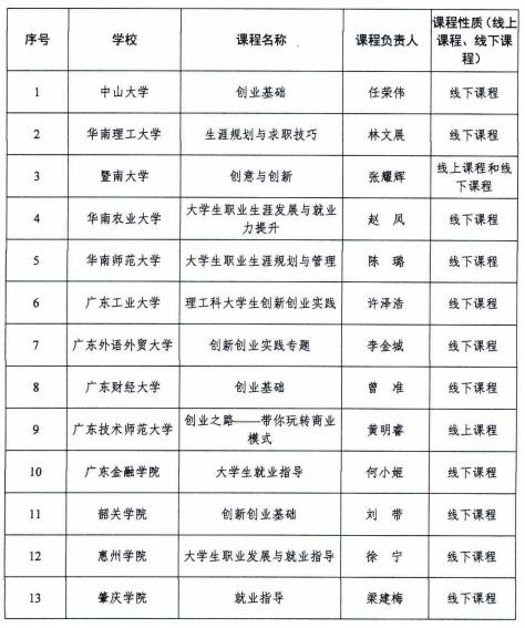 2021年廣東省高校就業(yè)創(chuàng)業(yè)金課名單