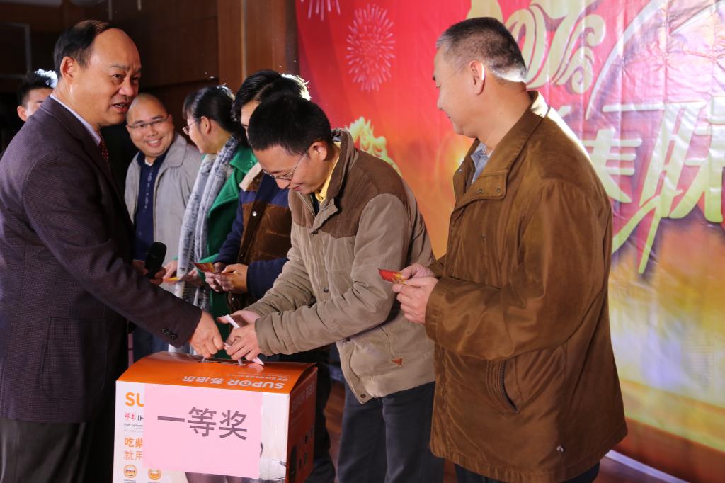 張亞斌執(zhí)行董事發(fā)表了熱情洋溢的新年致辭。他代表劉維嘉董事長、董事會、校管會向辛勤耕耘、努力工作的全體教職工致以新春的問候和衷心的感謝,并對2016年公司所屬各單位取得的成績和進(jìn)步作了總結(jié)。認(rèn)為城建學(xué)院久久為功,緊緊抓住創(chuàng)新強(qiáng)校的工作主線,努力“創(chuàng)強(qiáng)晉優(yōu)爭一流”,為加快建設(shè)步伐、謀取遠(yuǎn)大發(fā)展奠定了堅(jiān)實(shí)基礎(chǔ)。并希望全校上下一心,抓住新的契機(jī),充分發(fā)揮聰明智慧,扎實(shí)有效做好工作,迎接學(xué)校更大更好的發(fā)展前景。他還深情地跟大家分享了學(xué)校后勤工作人員歐銀娟和技校老師高鳳在平凡崗位上,愛崗敬業(yè)、無私奉獻(xiàn)的先進(jìn)事跡,并給予他們特別嘉獎。張總感謝兩位同志在工作中為大家?guī)砹撕芏酂o法量化的貢獻(xiàn),用實(shí)際行動踐行了“求真務(wù)實(shí)、勤奮敬業(yè)”的城建精神,讓人感動,值得學(xué)習(xí)。