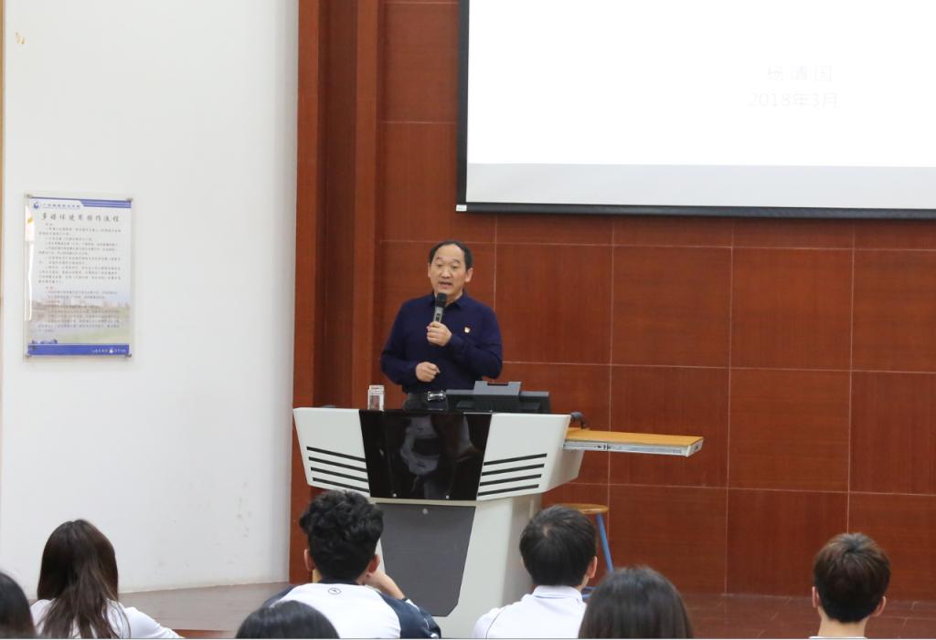 楊書記以《共產(chǎn)黨人的初心與使命》為題,以一名老共產(chǎn)黨員的身份和學生們切身回顧和分享了中國共產(chǎn)黨幾十年來“始終同人民想在一起、干在一起”,追尋初心、保持初心的艱辛歷程;并從“四個偉大”詳細闡釋了新時代黨的歷史使命,號召同學們和黨一起堅持“為中國人民謀幸福,為中華民族謀復興”的初心,堅定中國特色社會主義道路自信、理論自信、制度自信和文化自信,在從嚴治黨的道路上共同創(chuàng)建祖國美好的未來。楊書記的親切授課不僅使學生深刻理解了黨的理論知識,而且增強了學生的認同感使命感,取得了突出的教育教學效果。