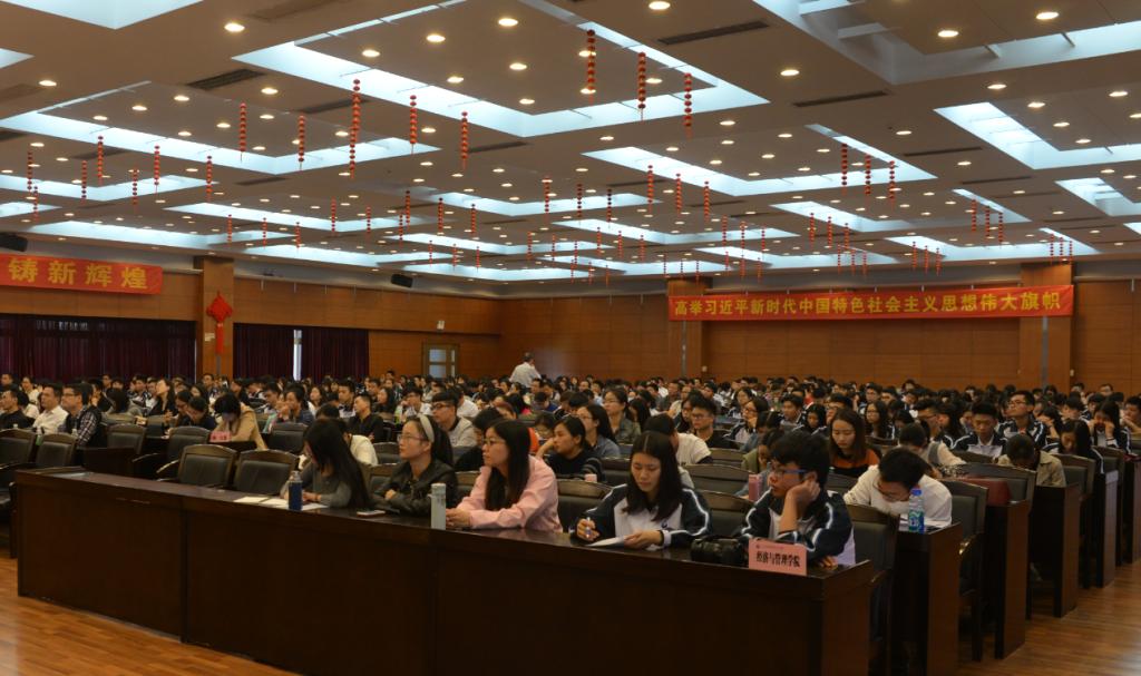 楊書記為報告會作總結(jié)講話,指出本次輔導報告是貫徹落實黨中央、省委教育工委學習宣傳貫徹黨的十九大精神系列活動之一,輔導報告主題鮮明、理論深厚、邏輯縝密,深入淺出地為廣大黨員師生進行了黨的十九大精神的學習輔導。還指出要把學習宣傳貫徹黨的十九大精神作為我校當前和今后一個時期的首要政治任務,希望各黨總支(直屬黨支部)要掀起學習宣傳貫徹黨的十九大精神的熱潮,將學習黨的十九大精神落實到具體工作中,做到“四個結(jié)合”,落實全面從嚴治黨的主體責任,扎實推進習近平新時代中國特色社會主義思想進教材、進課堂、進學生頭腦、進網(wǎng)絡、進學生社區(qū)“五進”工作,做到學習貫徹黨的十九大精神全覆蓋,繼續(xù)深化“兩學一做”學習教育,為學校創(chuàng)強晉優(yōu)爭一流發(fā)展提供有力的組織保證。
