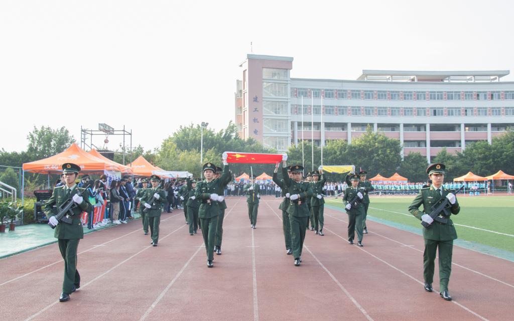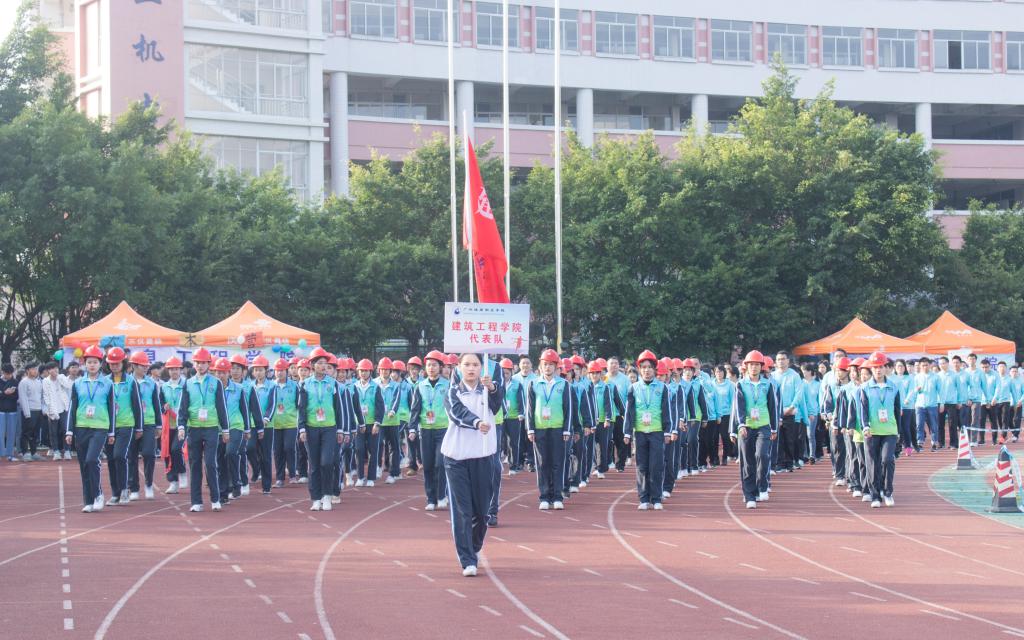 國旗隊手執(zhí)國旗,踏著整齊的步伐昂首闊步走過主席臺。各院系代表方隊各具特色,踏著整齊的步伐、喊著嘹亮的口號,英姿颯爽、意氣風發(fā),展現(xiàn)了廣州城建師生朝氣蓬勃、昂揚向上的精神風貌。