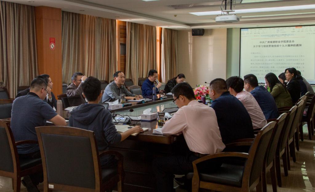 會上,共同研討了《廣州城建職業(yè)學院關于學習宣傳貫徹黨的十九大精神的通知》,隨后參會人員結(jié)合各自工作分享了學習心得,暢談感受體會和具體落實舉措。共同探討如何進一步學習宣傳貫徹黨的十九大精神,更好地開展各項工作。