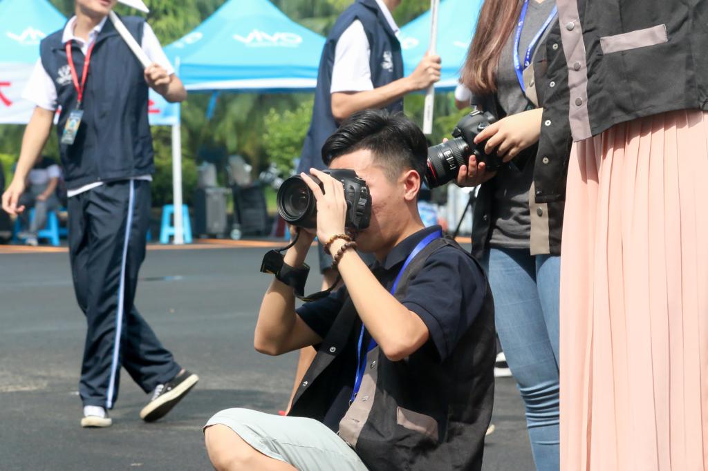 志愿者指引 學(xué)生記者團(tuán)記錄迎新現(xiàn)場場景